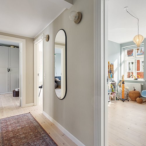 Projektet omfatter transformationen af to eksisterende lejligheder som ved sammenlægning omdanner bygningen til ét samlet familiehus. Bygherres ønske var at skabe et tidssvarende og funktionelt hjem for familien – med respekt for byhusets eksisterende kvaliteter og struktur. Ombygningen har fokus på at skabe sammenhæng mellem etagerne, gode dagslysforhold og fleksible rum, der kan tilpasses familiens behov over tid, i respekt for bygningens oprindelse og den meget bynære kontekst.
