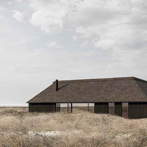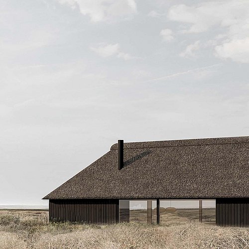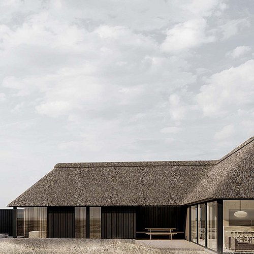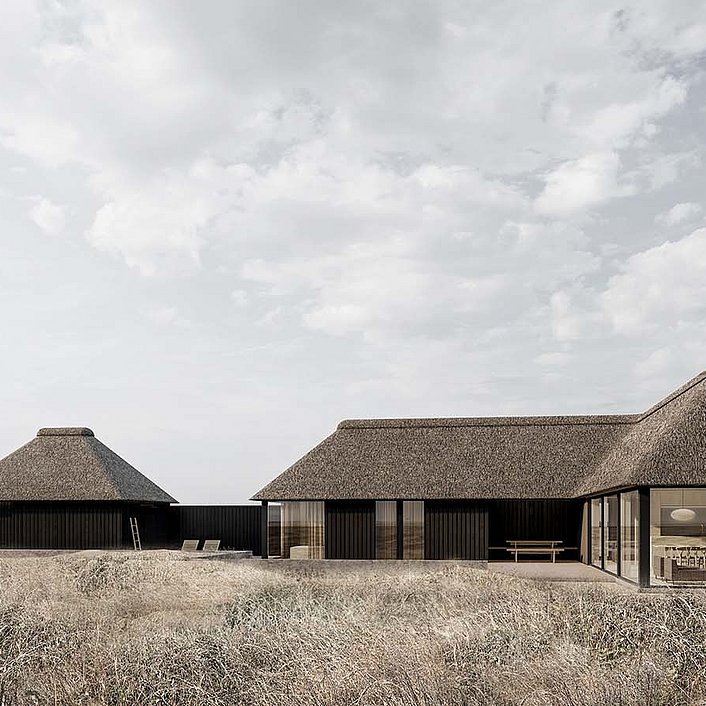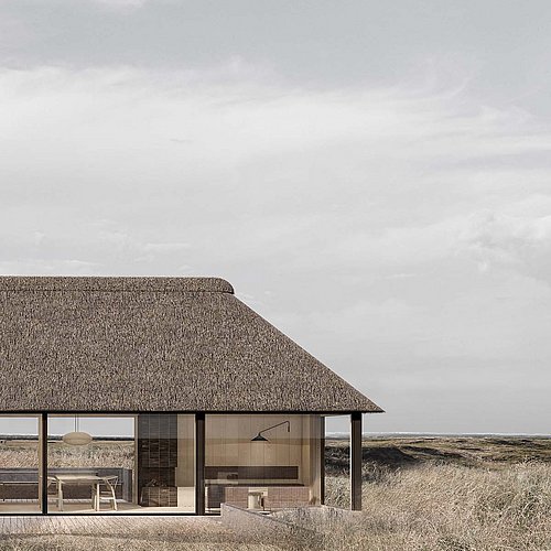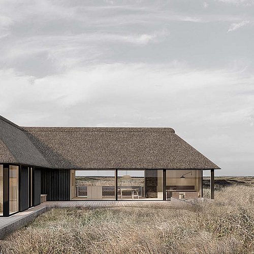 Dunescape danner rammerne for ro og nærvær i en moderne fortolkning af den klassiske fritidshus med stråtækttag.