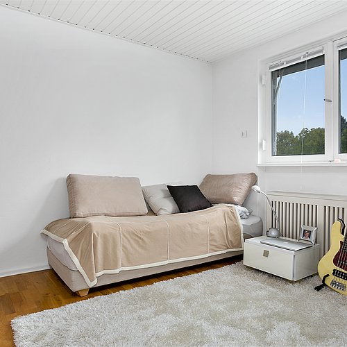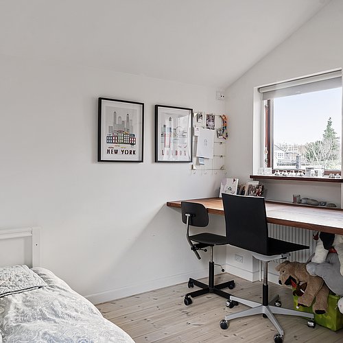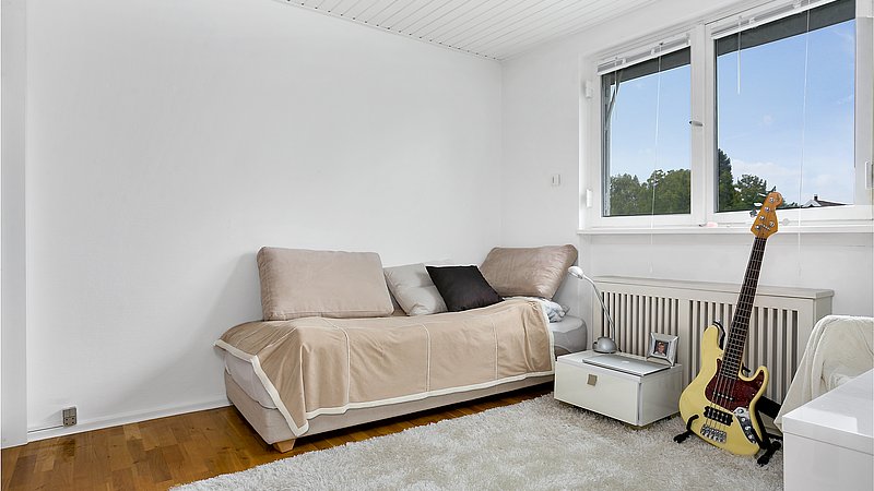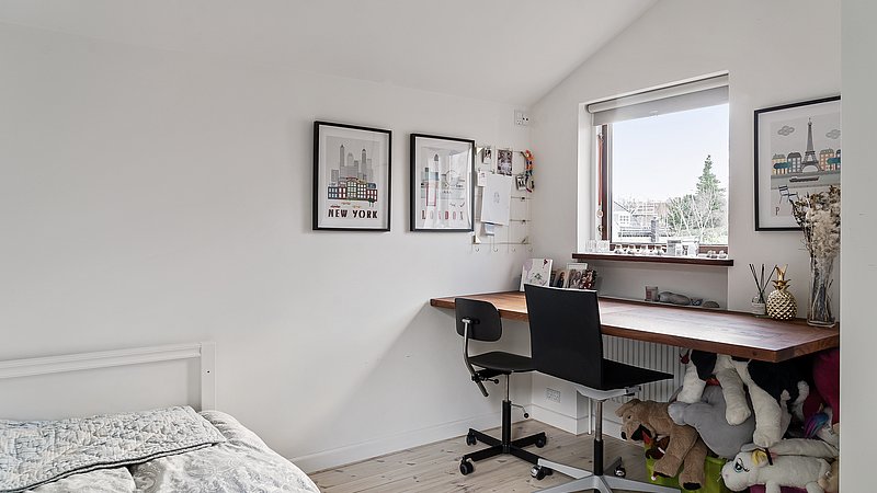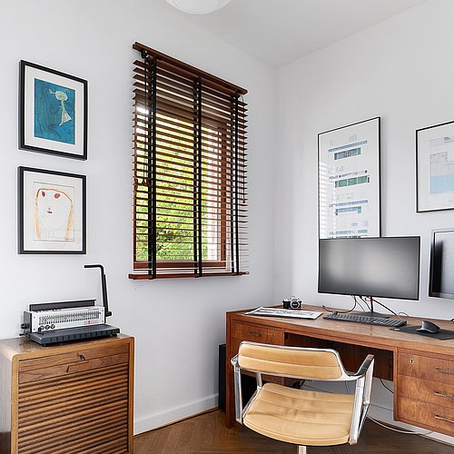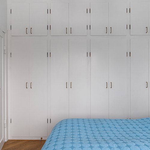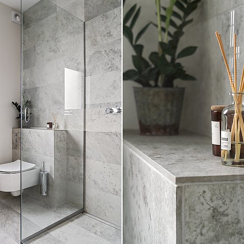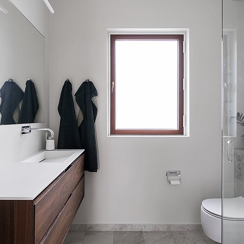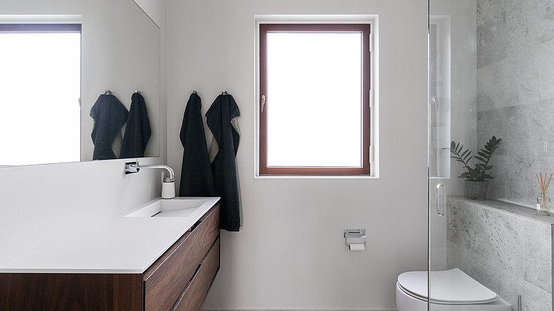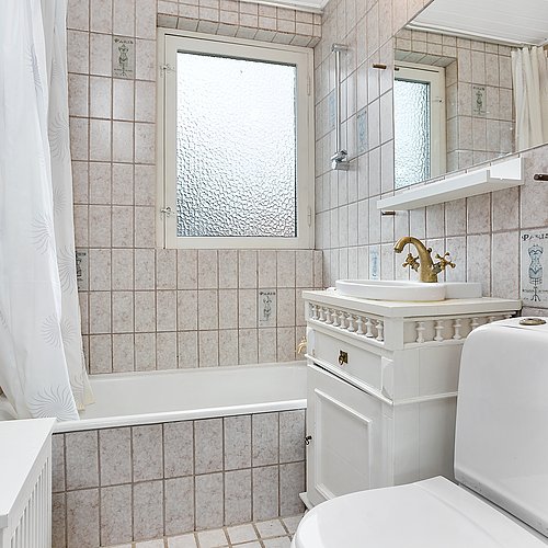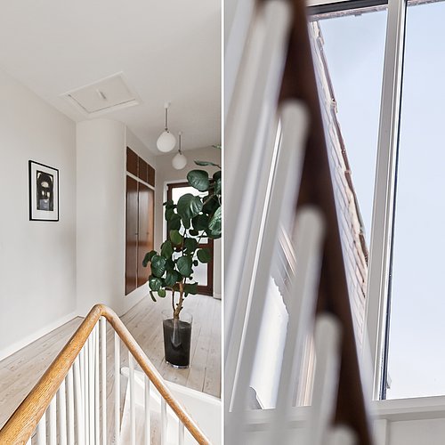 Flytningen af køkkenet frigav plads til et ekstra værelse og en ny fordelingsgang med indbyggede skabe. Et genbrugsskab blev indbygget i en hvid ramme med klassisk bue, så opbevaring blev en naturlig del af arkitekturen. Badeværelset i stueplan blev udvidet med bedre bruseniche, og der blev etableret et nyt badeværelse i kælderen som del af en større kælderrenovering. Det løftede husets funktion markant og gav samtidig plads til endnu et kontor, så boligen i dag kan rumme både familieliv og arbejdsdag. Resultatet er en villa renovering, hvor boligejeren fik et mere sammenhængende udtryk, bedre indeklima og en hverdag, der glider lettere – med materialer, der holder og detaljer, der passer til huset. Netop derfor giver en villa renovering her både arkitektonisk sammenhæng og mærkbar værdi i daglig brug.