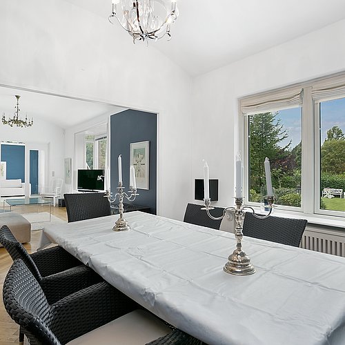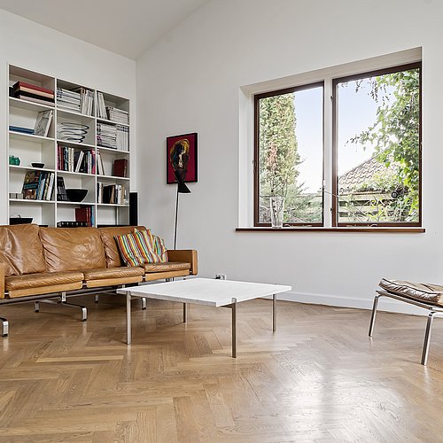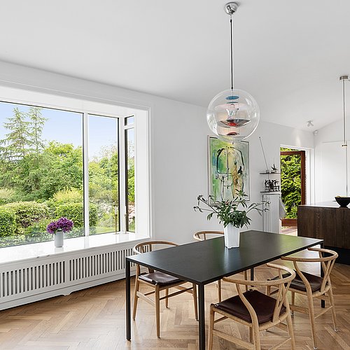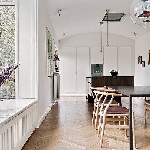 Denne villa fra 1944 trængte både til en arkitektonisk tilbageføring og en planløsning, der kunne følge en moderne hverdag. Målet var en renovering, hvor huset igen fik sit oprindelige udtryk – samtidig med at familien fik mere plads, bedre flow og flere funktioner uden at gå på kompromis med helheden.