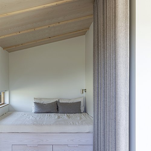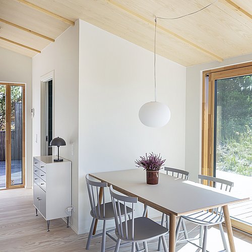 Der er arbejdet intenst på at opnå så funktionelt et hus som muligt. Spatiøst er nok er overdreven beskrivelse, men det var vigtigt for arbejdet med opgaven at opnå en rummelighed, hvor der er plads til at trække sig tilbage og bare nyde udsigten.