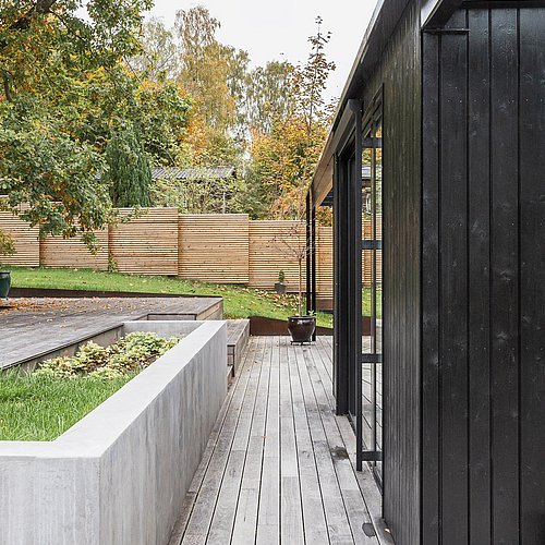 Huset er opført som et sommerhus men tænkt til på sigt at skulle fungere som et helårshus. Materialerne er robuste og langtidsholdbare men uden at ”larme” for meget. Her er det nemlig omgivelserne, lyset og naturen som primært tegner rummene og arkitekturen.