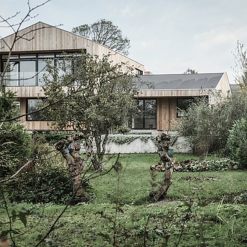 Villaen er beliggende i Brabrand ved Århus, med fantastisk udsigt over Brabrand Sø. Villaen er en om- og tilbygning af en eksisterende villa fra 1960'erne. 1. salen er bygget til og ligger sig som en selvstændig boligkrop ortogonalt på den ensisterende et-plans villa. En tredje boligkrop er tænkt ind i projektet og skal tilføjes mod vest i en 2. byggeetape. Villaen er beklædt med ubehandlede cedertræslister.