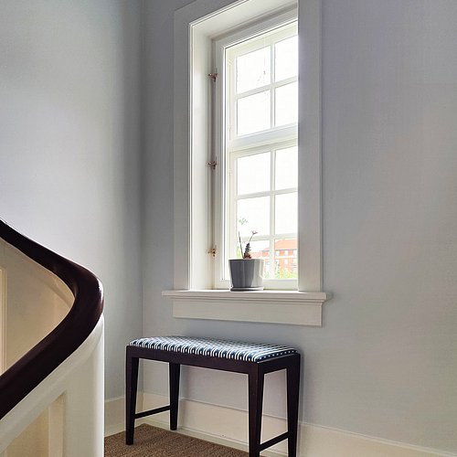 Alle oprindelige vinduer er i videst muligt renoveret og der er opsat forsatsrammer for energibesparelse.
