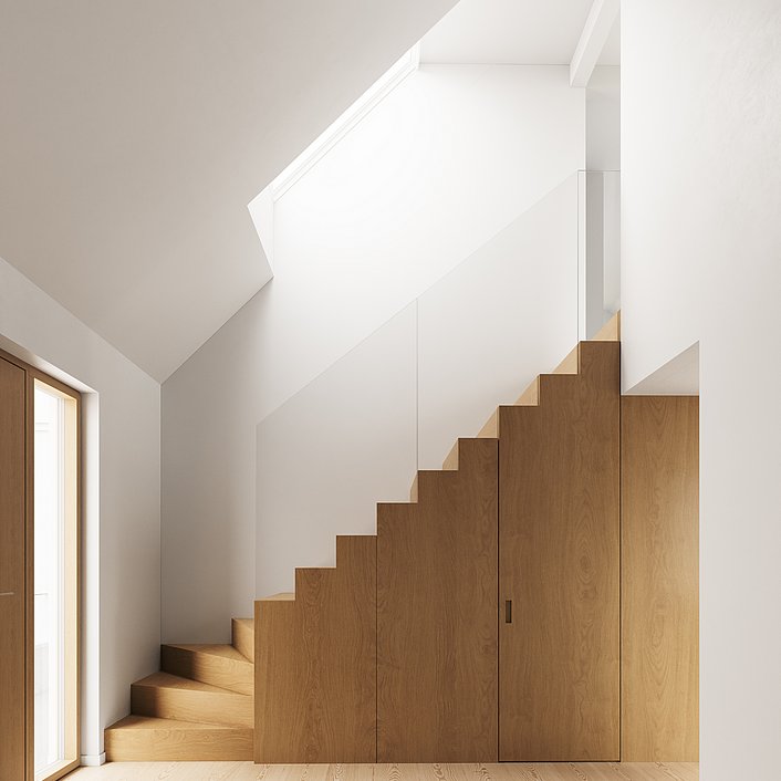 Vi har skabt en ny, smuk, hall, der forbinder stueetagen med førstesalen og giver husets ankomst et stort løft.