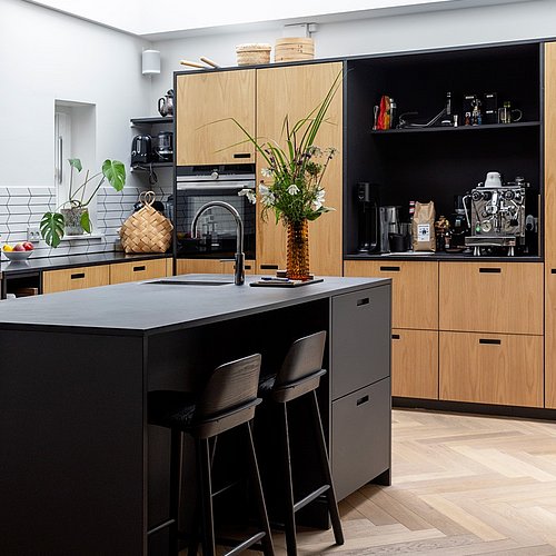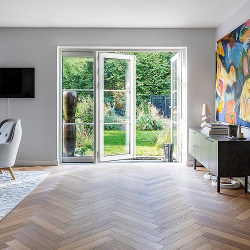Renoveringen omfattede også nye rumlige kvaliteter i resten af huset med ovenlys, gennemgående sildebensparket i eg, forbindelser mellem rummene og en mere gennemtænkt lyssætning. Resultatet er en bolig, hvor tilbygning, totalrenovering og eksisterende hus nu opleves som en sammenhængende helhed med mere lys, mere funktion og højere boligkvalitet.