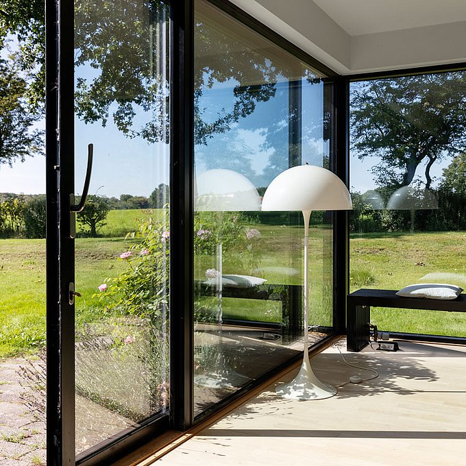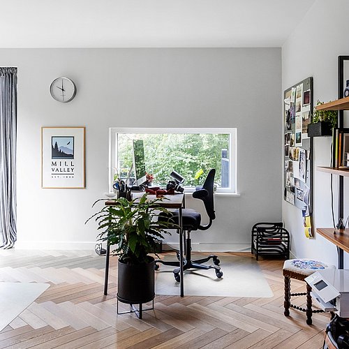 Samtidig blev boligen åbnet mere op, så udsigten til haven og dagslyset blev en større del af familiens oplevelse i huset. I den nyeste tilbygning blev der blandt andet skabt et lyst hjemmekontor med stort hjørnevindue fra gulv til loft og flot udsigt til haven.