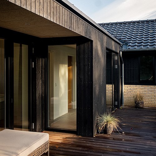 I Tranbjerg har vi tegnet en totalrenovering og tilbygning til Villa Kirk. I tilbygning inddrages den eksisterende garage til boligen og forlænges ud i haven. Tilbygning giver familien en forældreafdeling med direkte adgang til haven. I renoveringen får familien nyt bryggers, badeværelse, børneværelser og alrum og stue. Derudover udskifes alle vinduer også til ventilationsvinduer.