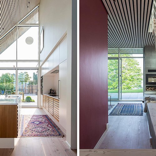 Villa P hedder huset, hvis bærende konstruktion er formet som bogstavet og dermed lader halvdelen af boligen være gennemsigtig, så den…